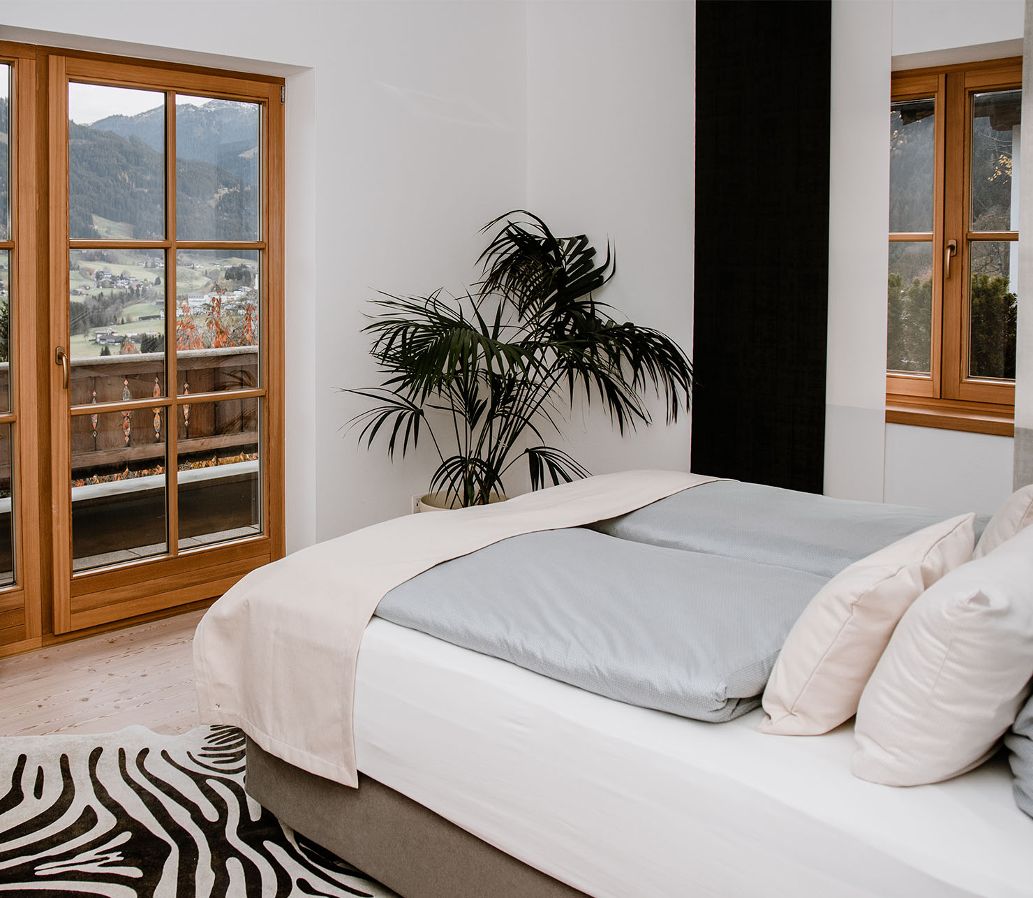 Wählen Sie zwischen dem 145 m2 großen Appartement PANORAMA und dem 45 m2 großen Appartement GARTEN.