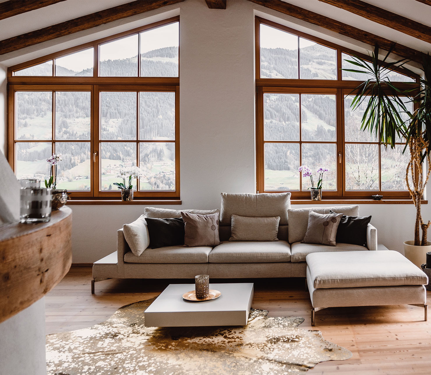 Wählen Sie zwischen dem 145 m2 großen Appartement PANORAMA und dem 45 m2 großen Appartement GARTEN.